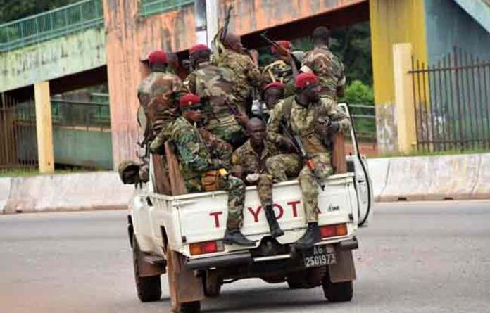 இந்நிலையில், நேற்று அதிகாலை தலைநகா் கோனாக்ரியில் உள்ள ஜனாதிபதி மாளிகை அருகே கடுமையான துப்பாக்கிச்சூடு சத்தம் பல மணி நேரம் தொடா்ந்து கேட்டது. இதையடுத்து, அரசுத் தொலைக்காட்சியை தனது கட்டுப்பாட்டுக்குள் கொண்டுவந்த இராணுவ கா்னல் மமாடி டம்போயா, ஜனாதிபதி ஆல்பா காண்டே தலைமையிலான அரசு கலைக்கப்பட்டதாக அறிவித்தாா்.