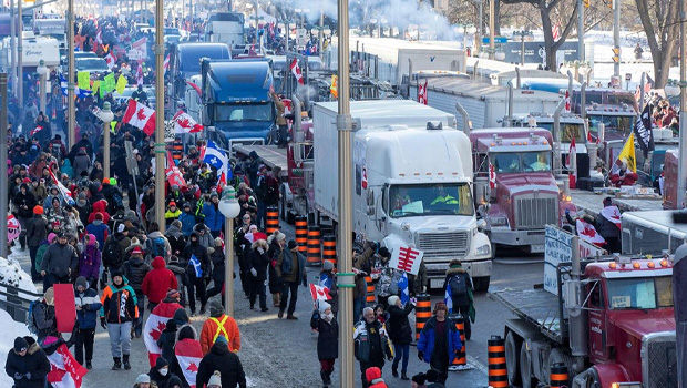 கனடா தலைநகரில் கொவிட்–19 தடுப்பூசி கட்டாயமாக்கப்படுவதற்கும் வைரஸ் கட்டுப்பாடுகளுக்கும் எதிர்ப்புத் தெரிவித்து நூற்றுக்கணக்கான கனரக வாகனங்கள் கண்டன பேரணியில் ஈடுப்பட்டதாக சர்வதேச செய்திகள் தெரிவிக்கின்றன.