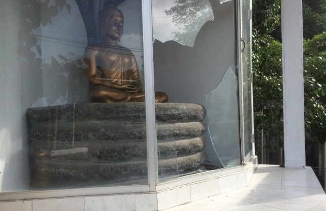 இந்த தாக்குதல் சம்பவத்தில் நாக விகாரையின் முகப்பில் உள்ள புத்தர் சிலையின் கண்ணாடிகள் உடைக்கப்பட்டுள்ளதுடன் புத்தர் சிலைக்கும் சிறிய சேதம் ஏற்பட்டுள்ளது.