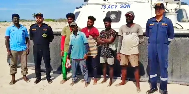 இலங்கை மீனவர்கள் ஐவரை இந்தியக் கரையோரக் காவல் படையினர் கைது செய்தனர்.