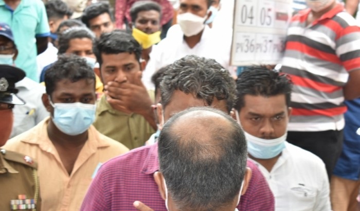 ஸ்ரீலங்கா பொதுஜன பெரமுன கட்சியின் ஆதரவாளர் ஒருவர் வாக்கு எண்ணும் நிலையத்துக்குள் செல்ல முற்பட்ட வேளை பொலிசார் அவரை தடுத்தனர்.