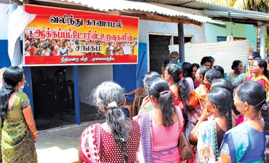 உள்நாட்டுப் போரின் போதும், போரின் இறுதிக் காலப்பகுதியிலும் வடகிழக்கில் ஏராளமான இளைஞர் யுவதிகள் பலவந்தமாக காணாமல் ஆக்கப்பட்டிருந்தனர். அதேவேளை, இறுதிப் போரில் இராணுவத்தினரிடம் சரணடைந்தவர்களுக்கு என்ன நடந்ததென்று இன்று வரை தெரியவில்லை.