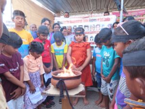 இதன்போது நேற்றையதினம் (01) சர்வதேச சிறுவர் தினத்தை முன்னிட்டு அம்பாறை மாவட்ட சிறுவர்கள் தலையில் கறுப்புப் பட்டி அணிந்து தீபம் ஏற்றி எதிர்ப்பை வெளியிட்டு தமது ஆதரவை வழங்கினர்.
