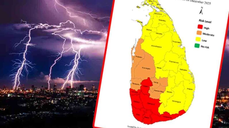 சப்ரகமுவ, மேல் மற்றும் தென் மாகாணங்களுக்கும் குருநாகல் மாவட்டத்திற்கும் பலத்த மின்னல் தாக்கம் குறித்த எச்சரிக்கை விடுக்கப்பட்டுள்ளது.