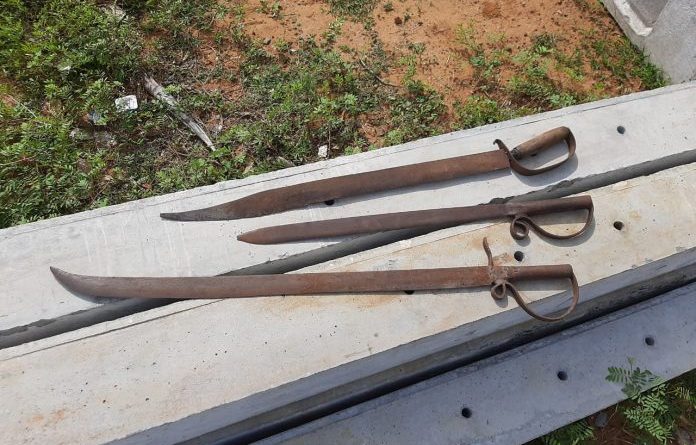 கிளிநொச்சி மாவட்டத்தின் பளை காவல்துறை பிரிவிற்குட்பட்ட முல்லையடி பகுதியில் இருந்து மேற்ப்படி வாள்கள் மீட்க்பட்டுள்ளதாக பொலிசார் தெரிவிக்கின்றனர்.